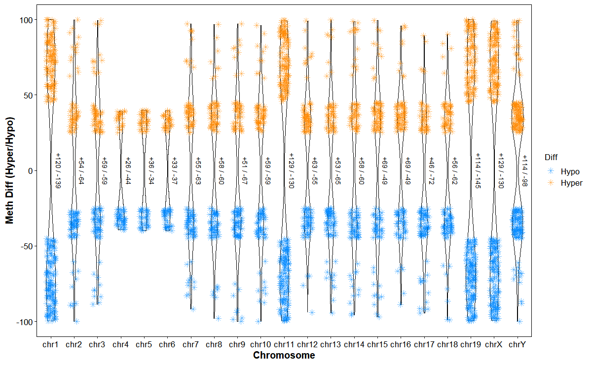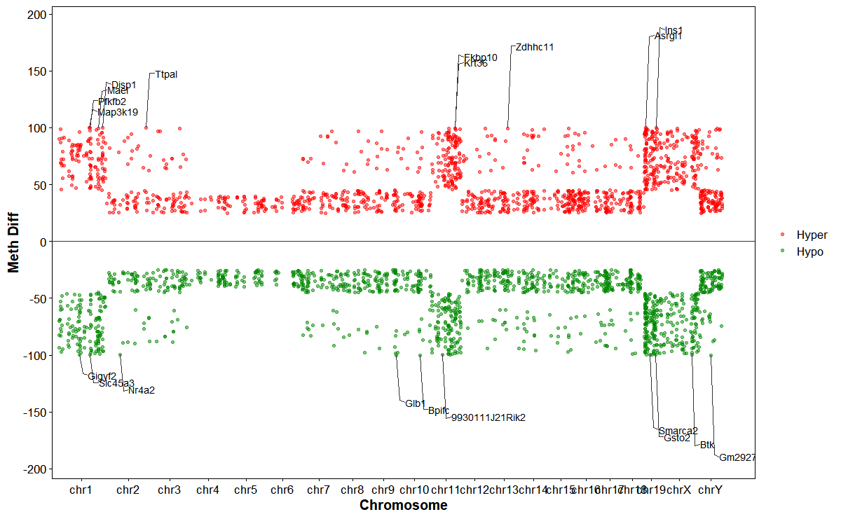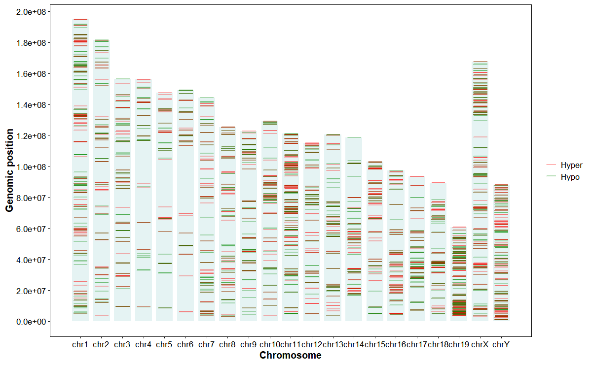 Plot DMGs manhattan plot across chromosomes