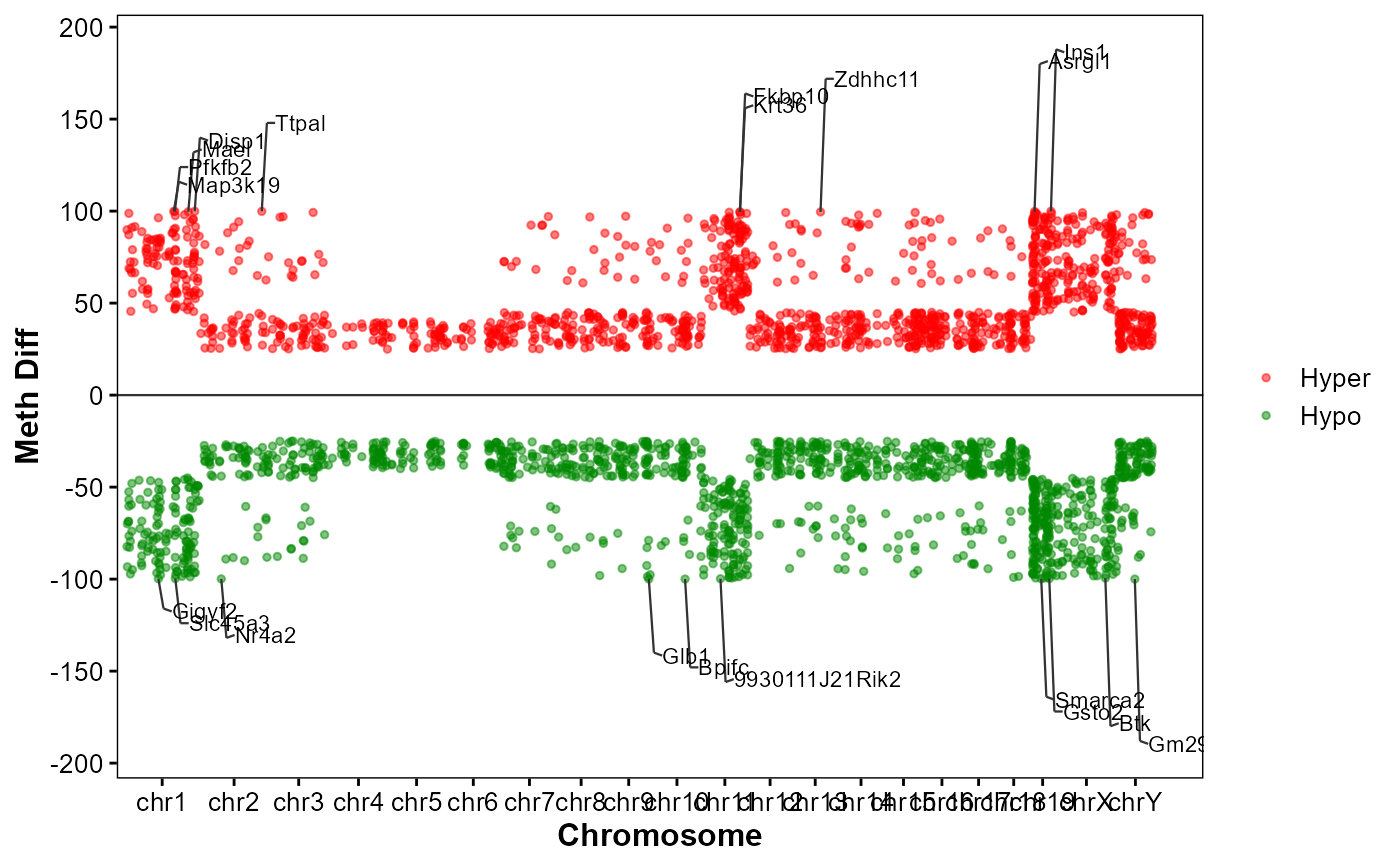 Plot genome-wide DMGs manhattan.